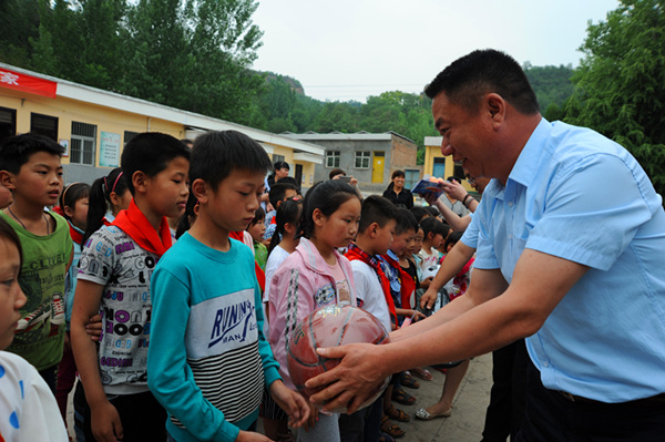 5月31日上午,開元集團(tuán)(香港)控股有限公司14位員工驅(qū)車近100公里,來到洛寧縣郭村小學(xué),參加由洛陽市委統(tǒng)戰(zhàn)部發(fā)起的愛心助學(xué)活動,為山區(qū)孩子們送去了學(xué)習(xí)用品、體育用品等愛心助學(xué)物資。市委統(tǒng)戰(zhàn)常務(wù)副部長張麗君、市委統(tǒng)戰(zhàn)部紀(jì)檢員張玉紅、開元集團(tuán)副總經(jīng)理楊春生、總經(jīng)理助理叢萬通等參加了捐贈儀式。