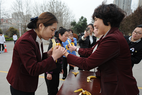 這次的運(yùn)動(dòng)會(huì)秉承著“團(tuán)結(jié)協(xié)作為主,娛樂放松并存”的主題,比賽的項(xiàng)目主要是綁腿往返跑,吃水果,擠氣球等一系列趣味性十足的項(xiàng)目。參賽的員工在比賽中積極競(jìng)爭(zhēng),團(tuán)結(jié)協(xié)作;場(chǎng)下的員工也是熱情吶喊,加油助威。上午的陽(yáng)光略有寒意,但是員工們的熱情絲毫不減。掌聲、加油聲、歡呼聲一陣緊接一陣,路人也深受感染前來(lái)觀看,紛紛拿出手機(jī)拍照。(文:王利偉)