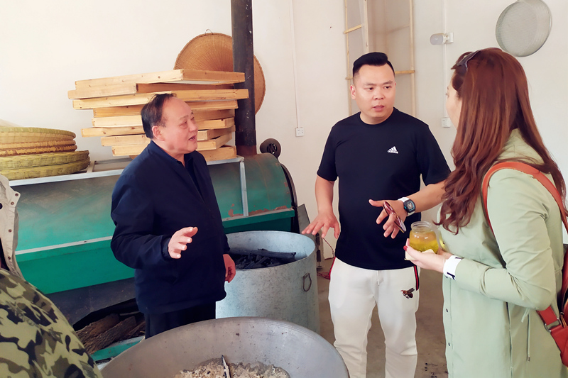 在這個(gè)秀美的山村里,周祖宏是個(gè)“名人”,他是周氏炒茶家族第四代傳人,憑著一手炒茶絕活,被河南省文化廳評(píng)為河南省省級(jí)非物質(zhì)文化遺產(chǎn)項(xiàng)目(信陽毛尖茶采制技藝)代表性傳承人。洛陽開元集團(tuán)一行來到周老師家里,董事長許明月與周老師親切交談,對(duì)制茶、品茶、信陽茶文化等一系列問題做了相互交流。在手工茶坊里集團(tuán)員工們也興致高昂地觀摩了炒茶師傅高超的手藝,手工炒茶可以使茶的營養(yǎng)成分更高,口感上偏濃,更加耐泡。大家品的是茶,吐出的是都市的困頓與繁雜。在300余畝的茶園中,縷縷茶香沁人心脾,在采茶工的引領(lǐng)下,全體員工愜意自得地體驗(yàn)采茶的樂趣。